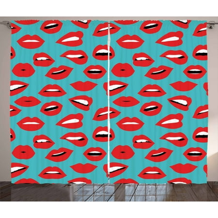 Kiss Curtains 2 Panels Set Retro Woman Mouth Red Lipstick Girl