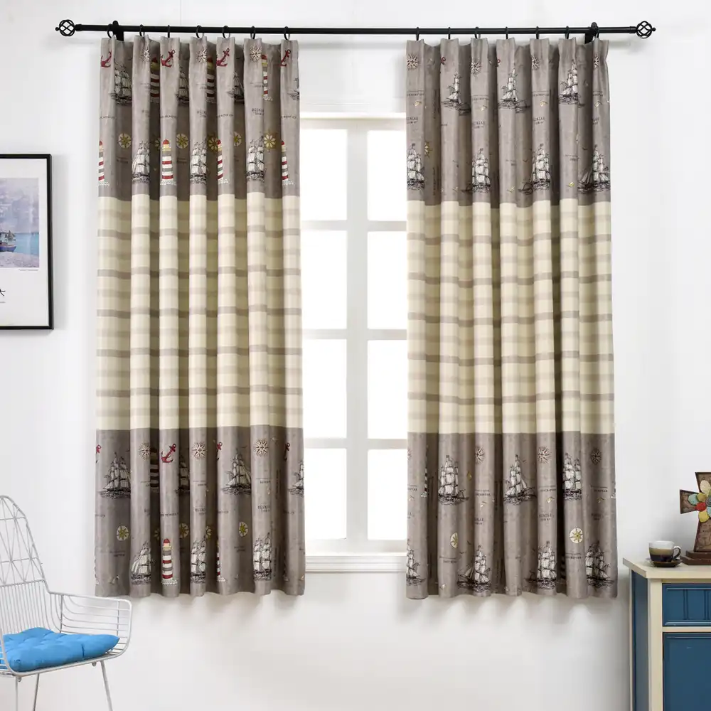 Blue Sea Short Curtains For Children Room Half Shade Curtains High