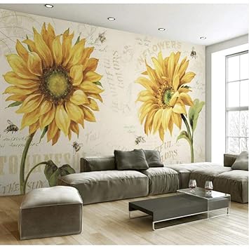 Lsweia Custom Wallpaper Simple Retro Sunflower Flower Tv