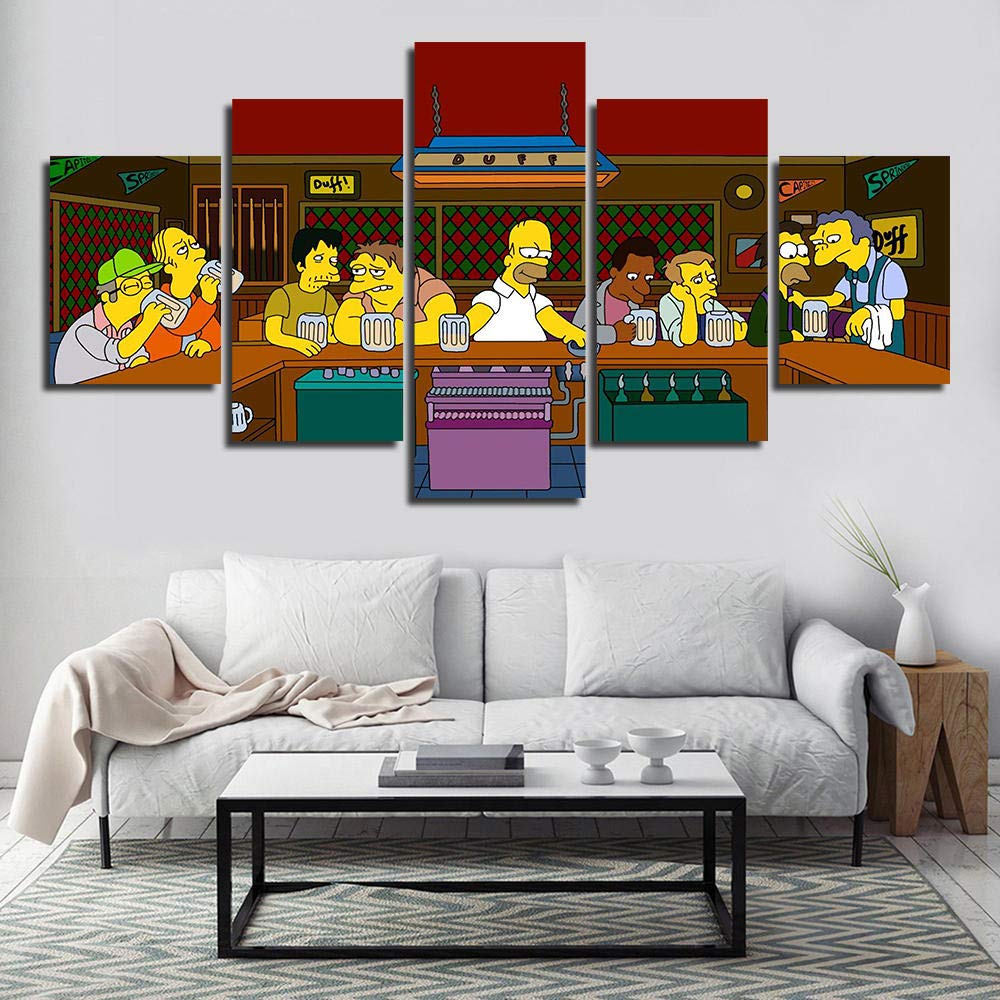 Amazon Com Wall Art Pictures Frame 5 Pieces Simpson At Bar Anime
