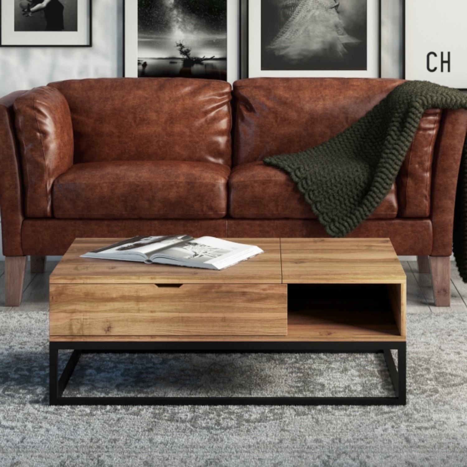 Solid Wood Flip Top Coffee Table With Industrial Black Base Suri