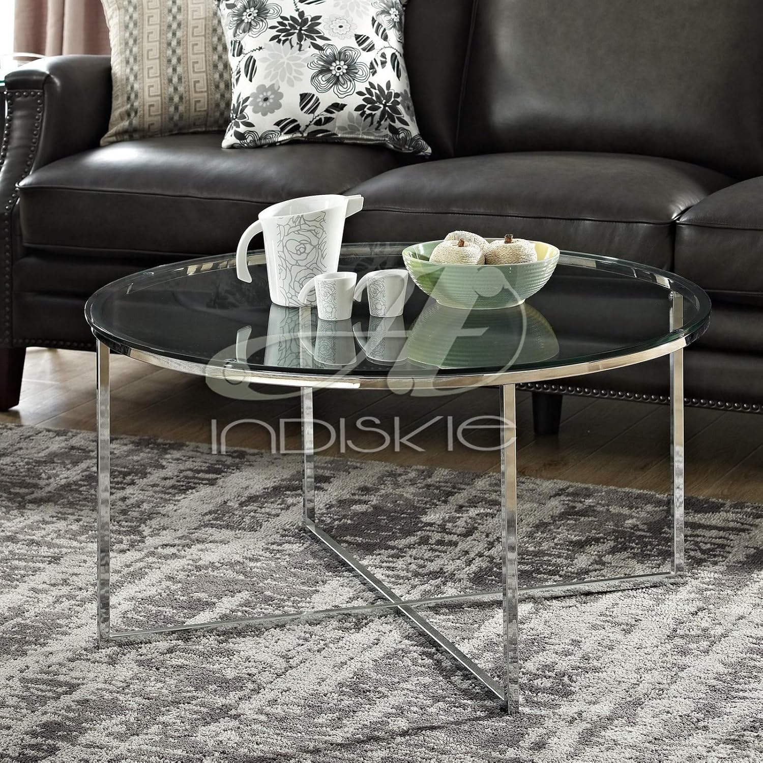 Indiskie 80 Cm Round Glass Top Coffee Table With Stainless Steel