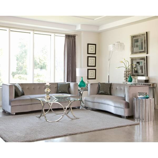 Shop Renfro Transitional Silver 3 Piece Velvet Living Room Set