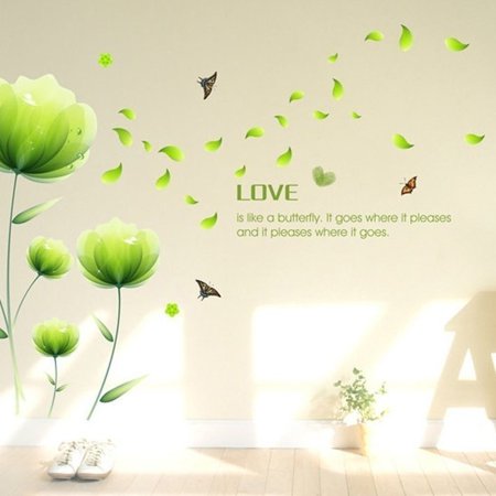 Beautiful Green Flowers Wall Decals Living Room Bedroom Removable