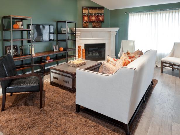 Green Living Room With Vintage Trunk Coffee Table Hgtv