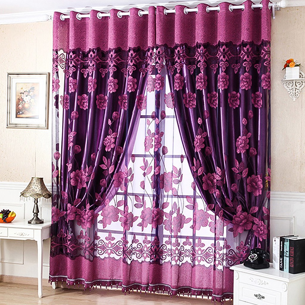Flower Pleated Tulle Perspective And Blackout Curtains Set Two