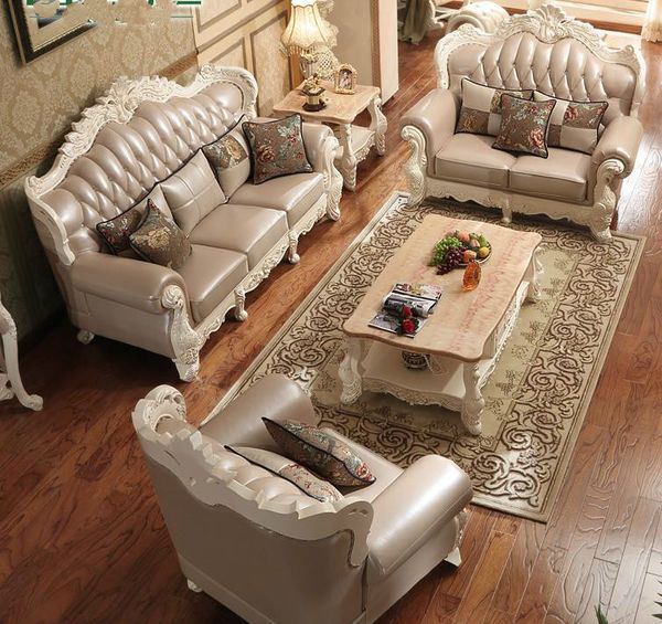 Luxury European Style Genuine Leather Living Room Sofa Furniture