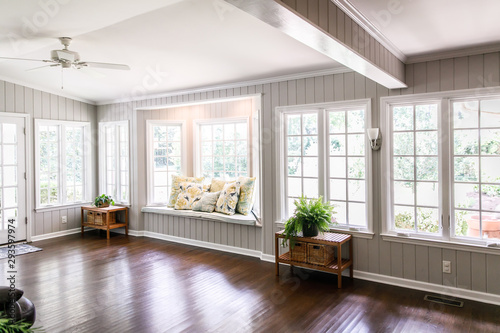 Large And Open Living Room Den Sun Room With Windows On Two Sides