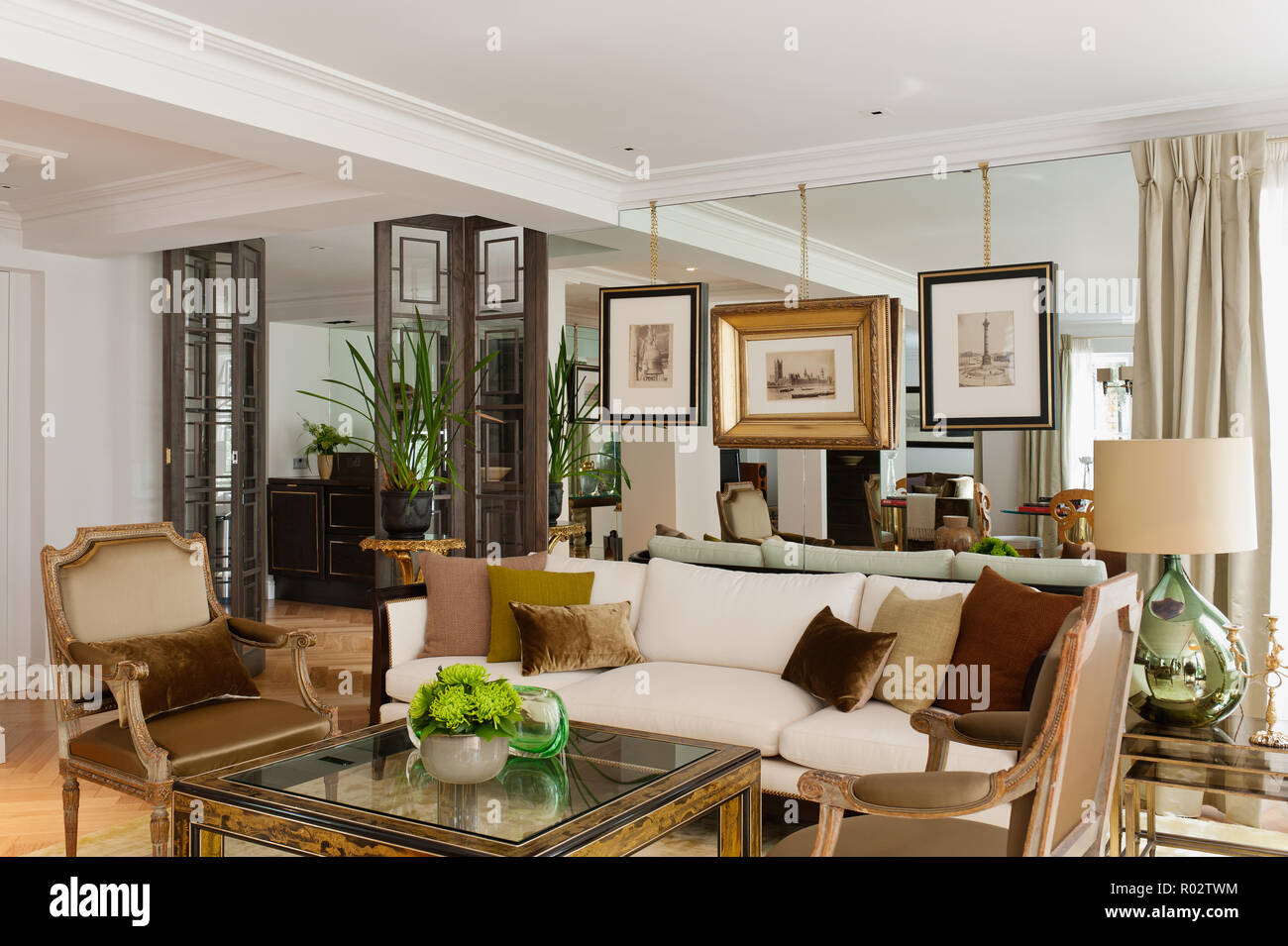 Living Room With Mirrored Wall Stock Photo 223798224 Alamy