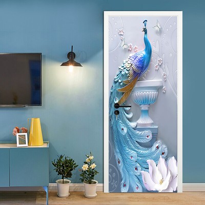 3d Self Adhesive Peacock Living Room Door Sticker Wallpaper Poster