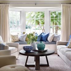 White Coastal Living Room With Blue Accents Cottage Living Room