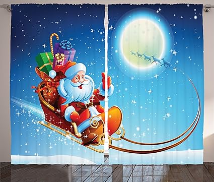 Amazon Com Lunarable Christmas Curtains Santa Claus On Dreamy