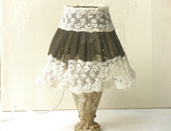 Shabby Chic Lamp Fabric Lace Lampshade Antique Home Decor Etsy