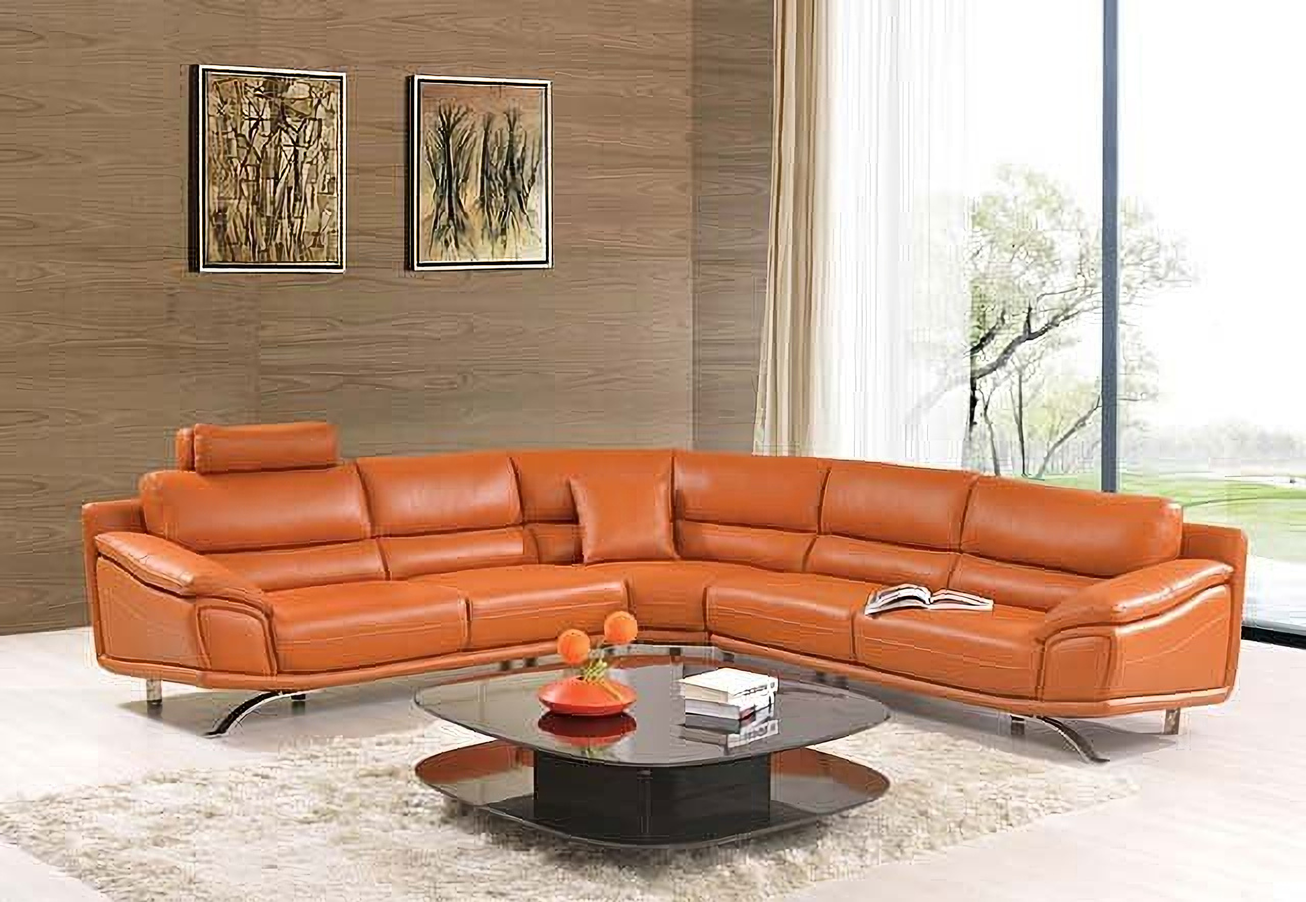 533 Orange Leather Sectional Set 1stopbedrooms