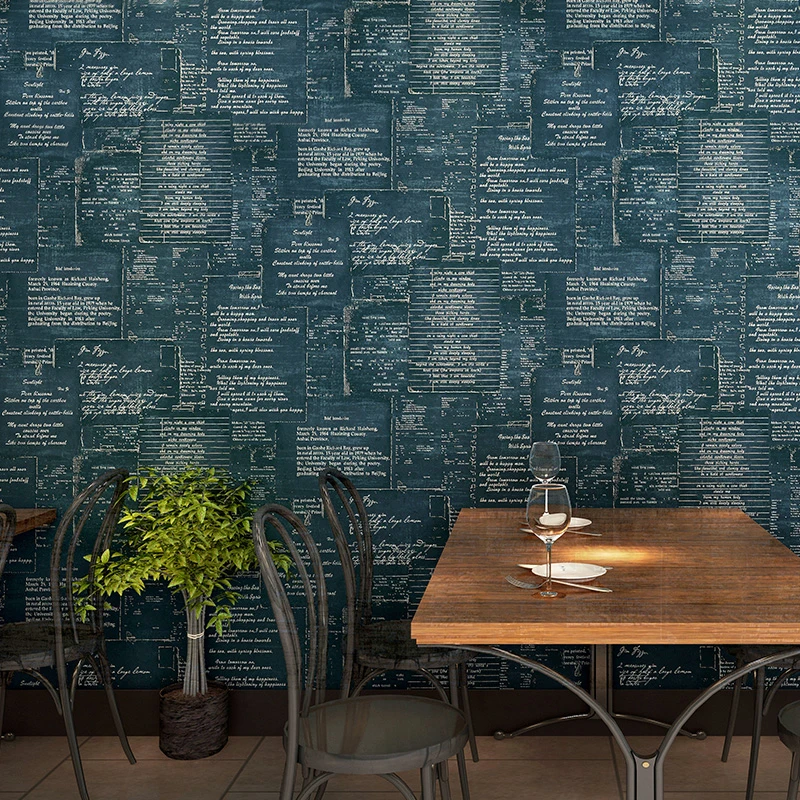 Blue 3d English Letter Wallpaper Retro Living Room Cafe Restaurant