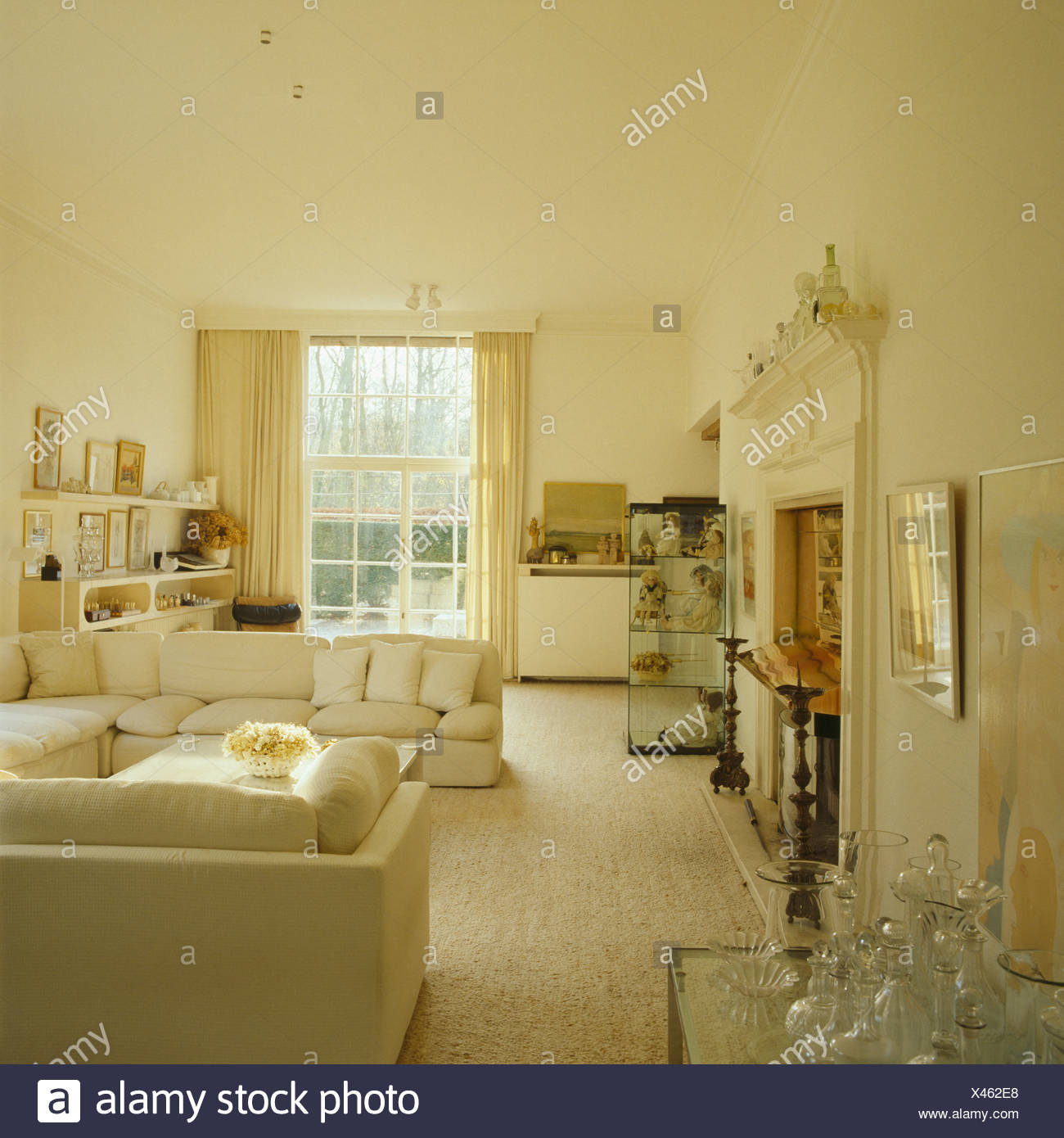 Sofas On Cream Carpet In Modern Swedish Livingroom Stock Photo